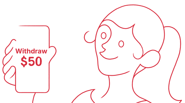 Lucy wants to withdraw $50 from her wallet.